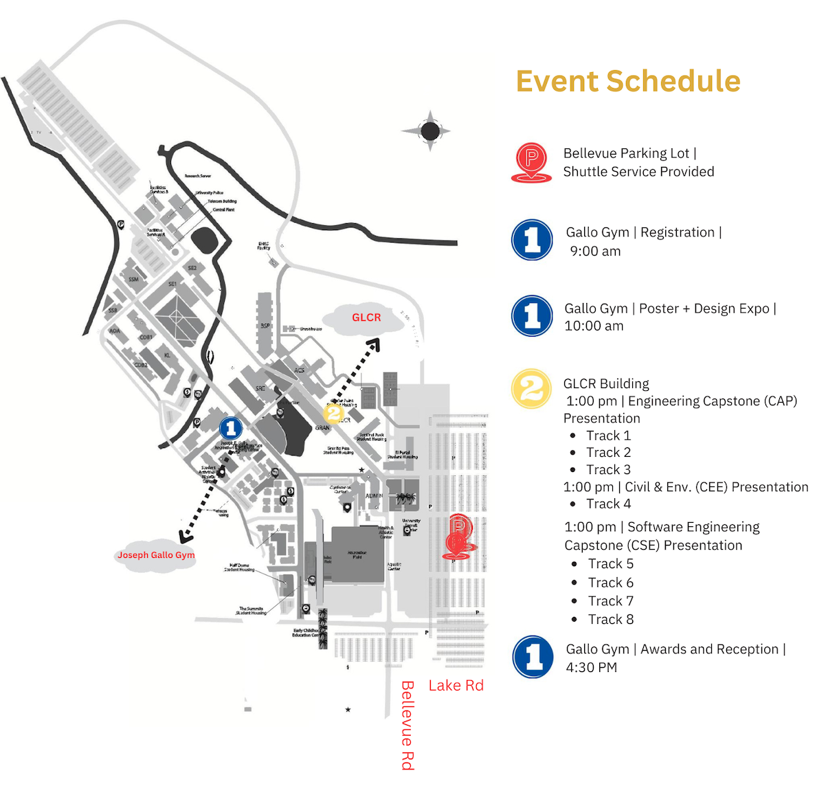 - Park in the reserved area in the Bellevue Lot (Gold section - follow signs).